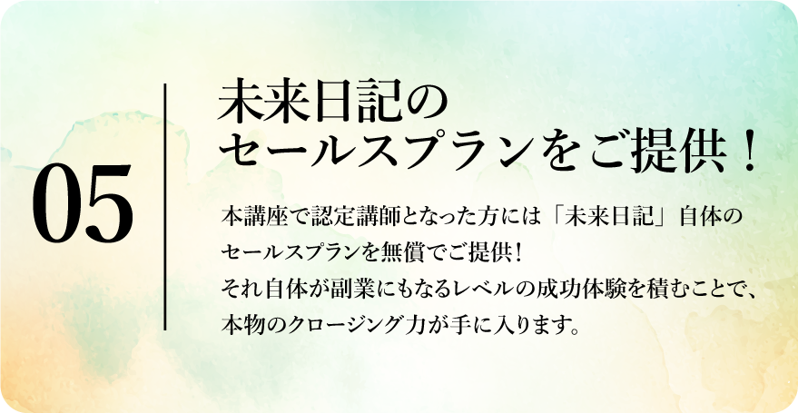 ご自身の教材や未来日記そのもののセールスを行っていただくことができます。